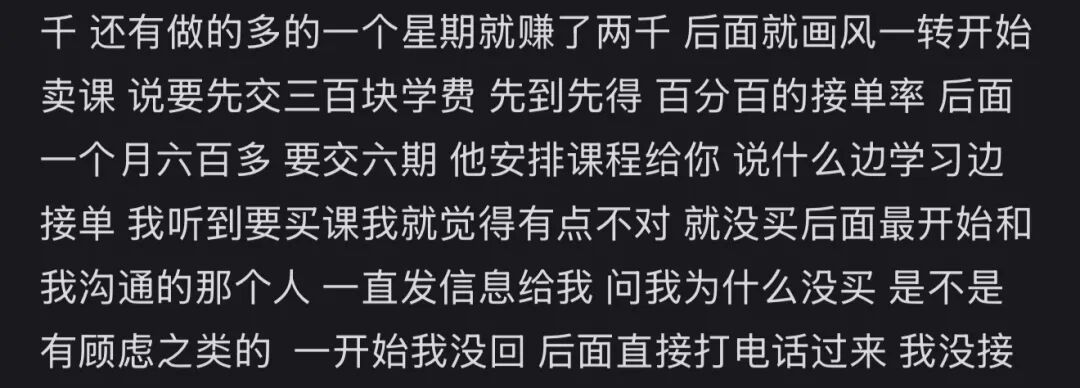 很多账号,不管事前说得多免费多天花乱坠,三句话之内必开始卖课。还有人连骗子的基本素养都不遵守了,只等你注册了平台会员,直接消失。