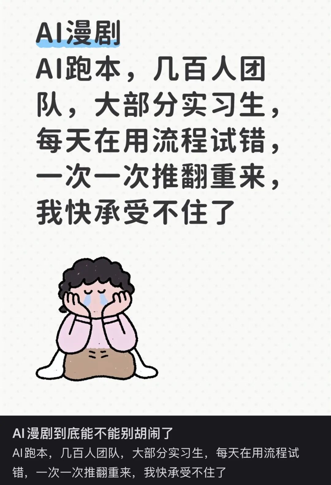 十几个实习生一整天用各种提示词生成无数画面,结束的时候把一整天的产出选出几分钟能看的拼在一起,就成了一部新漫剧。